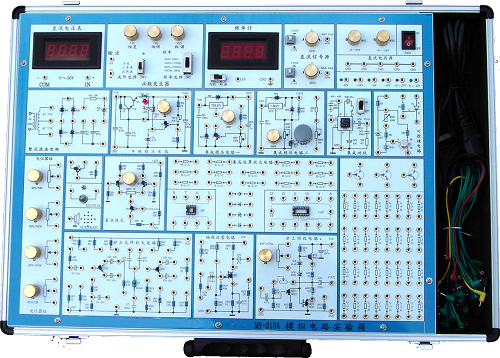 模拟电路实验箱是根据最新的《高等工业学校电子技术基础》教学大纲中确定的教学实验要求为基础,汲取了众多专业教师的教学经验,并综合了众多同类产品的优点而设计的。它函盖了《模拟电子技术基础》课程全部实验内容,既为初学者提供了验证性实验电路,又为课程设计提供了扩展平台。
