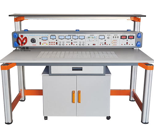 通用电子实验台-按照职业教育的教学和实训要求而设定,具有较完善的安全保护措施,较齐全的功能。实验桌中央配有通用电路板,电路板注塑而成,表面布有九孔成一组相互联通的插孔,元件盒在其上任意拼插成实验电路,元件盒盒体透明,直观性好,盒盖印有永不褪色元件符号,线条清晰美观。盒体与盒盖采用较科学的压卡式结构,维修拆装方便。元器件放置在实验桌下边左右柜内,大大提高了管理水平,规划化程度,大大减轻了教师实验准备工作。