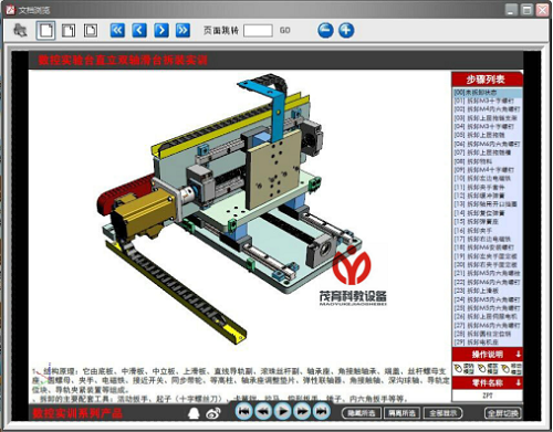 本软件采用3DPDF虚拟仿真技术,3D PDF结合了元数据,文字,图像,视频和表单的动态PDF文档(即加入三维动画的交互式PDF文档),包含丰富的3D数据。软件界面生动美观、易学易用,可以提高教师教学和学生学习的兴趣,加深学生对知识的理解和运用。软件通过三维拆卸动画、三维装配动画、模拟拆装等方式,生动地展示了机械传动机构、送料部件(十字滑台)、转塔部件、模具、机械式冲料机构等模块的拆卸和装配过程。。可实现以下功能: 1.虚拟交互式拆卸动画,均按机械结构顺序进行,每一步都有动画和详细的拆卸文字介绍及注意事项。 2.软件可自由的对模型进行旋转、缩放、平移、隐藏、隔离、显示等操作,设有旋转模型、缩放模型、移动模型、隐藏所选、隔离所选、全部显示、全屏切换、等按钮。 3.软件播放功能:设有第一步、上一步、播放全部、下一步、末一步等按钮。 4.机械设备装调与控制技术的基本知识及介绍 5.机械设备装调与控制技术主要组成器件的结构及工作原理 6.自动送料部件(十字滑台)的虚拟拆装、三维动画演示,拆卸和装配各110步动作。 7.转塔部件的虚拟拆装、三维动画演示 8.模具的虚拟拆装、三维动画演示,拆卸和装配各24步动作 9.机械式冲料机构的虚拟拆装、三维动画演示 拆卸和装配各102步动作 |