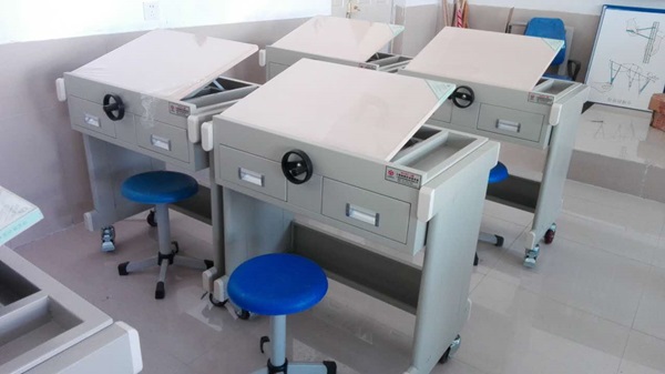 工程制图实验室设备,工程制图桌,工程绘图桌,工程技能实训桌是一种应用于美术创作及工程制图领域的教学用具,工程制图实验室的实验教学旨在帮助学生掌握各种手工绘图工具的使用,提高学生工程制图(手工)能力的培养与技巧的掌握,利用工程制图实验室可以进行传统手工绘图训练、完成工程制图课程学习任务、完成课程设计、毕业设计。工程制图实训成套设备包括教师综合制图桌椅、专业学生制图桌椅设备、各类专业制图工具、制图模型等,主要用于学生完成识图、手工绘图等教学任务,旨在培养学生掌握建筑图纸的识图技巧和手工绘图的绘图方法,加强学生应用新技术、新方法的训练,提高学生发现问题、分析问题和解决问题的能力。
