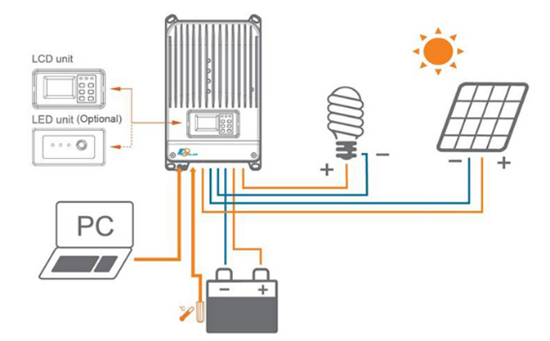 该项目主控系统采用国内知名厂商所生产的iTracer系列MPPT控制器,该控制器是一款基于多相位同步整流技术的高端产品,适用于离网型光伏系统,控制器内建灵敏的最大功率点跟踪算法,迅速并准确地找到光伏电池最大功率点以获取更多的光伏能源,提高效率,降低系统成本。控制器通过配套USB通讯线可连接PC机监控软件,可实现单台或多台控制器的远程实时监控、参数修改、负载设置等光伏系统管理功能。