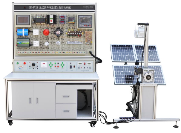 光伏发电原理实训装置主要由光伏装置、逐日系统装置、控制装置(含控制器、逆变器)、仪表与负载单元、监控系统组成,