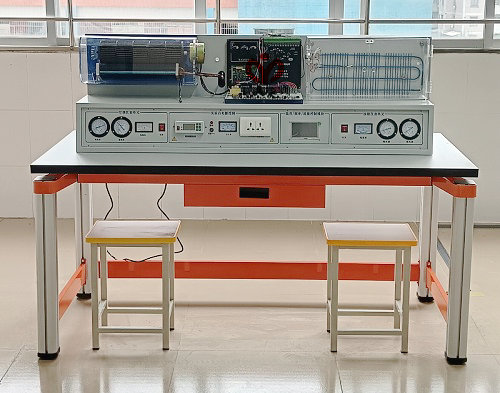 适合中等职业学校的制冷和空调设备运用与维修等专业的《制冷空调机器设备》《制冷空调装置的安装操作与维修》《制冷空调自动化》《空气调节技术与运用》等程的教学与实训。空调制冷制热实训台采用了变频技术,先将单相交流电源经整流桥整流成直流电,又经三相逆变桥把直流电“逆变”成频率任意可调的三相交流电,自动控制压缩机的速度达到节能的目的。另外新增加其它类型的空调、冰箱系统及电路十几 个机种,有利于学生更全面地掌握制冷制热技术。分体空调为立体结构,前面为仿真 室内机组,后部为仿真室外机组,室内机组改进为真实空调组件,外套真空调全透明外壳。冰箱方面也进行了改进,前后格分开:前面为冷冻室,后面为电冰箱压缩机、 工作室、加装温度调节器。