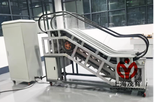 教学模型适用于职业院校、中职院校电梯技术专业学员进行自动扶梯梯级拆装、操纵和维修保养实训教学训练。明教学自动扶梯模型采用优质方管焊接密纹喷塑组装成扶梯桁架,梯级踏板系统、扶手带系统、曳引机系统,设备台架、安全检测系统,电气控制控制系统等。