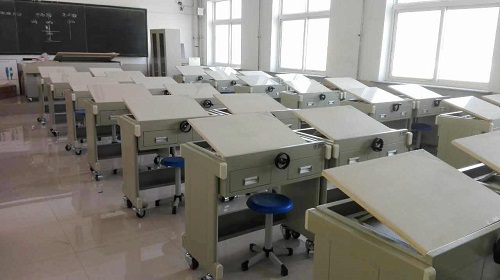 工程制图实验室设备,工程制图桌,工程绘图桌,工程技能实训桌是一种应用于美术创作及工程制图领域的教学用具,工程制图实验室的实验教学旨在帮助学生掌握各种手工绘图工具的使用,提高学生工程制图(手工)能力的培养与技巧的掌握,利用工程制图实验室可以进行传统手工绘图训练、完成工程制图课程学习任务、完成课程设计、毕业设计。工程制图实训成套设备包括教师综合制图桌椅、专业学生制图桌椅设备、各类专业制图工具、制图模型等,主要用于学生完成识图、手工绘图等教学任务,旨在培养学生掌握建筑图纸的识图技巧和手工绘图的绘图方法,加强学生应用新技术、新方法的训练,提高学生发现问题、分析问题和解决问题的能力。